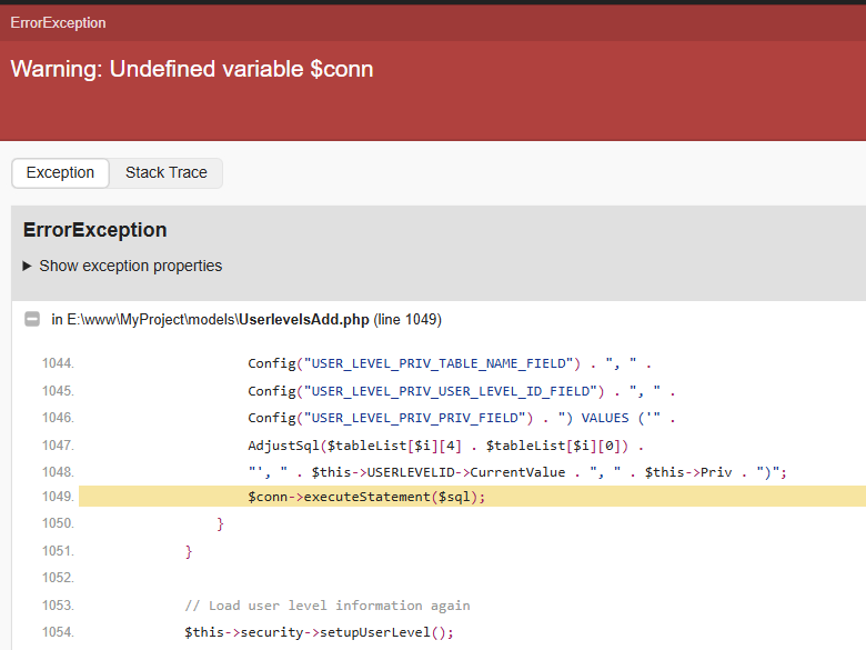 When you Add a new User Level and pre-select any one of the permissions, for example, List permission, you will get error as below:
