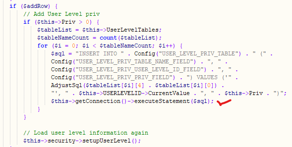 If I press back, the User Level successfully added, but the records in permissions table is not added.