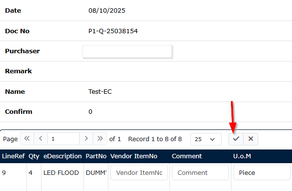 when the user press Save after grid edit then a popup message asking if he wants to confirm and close the file. If he press Yes then the Master Confirm field must change from 0 to 1.
