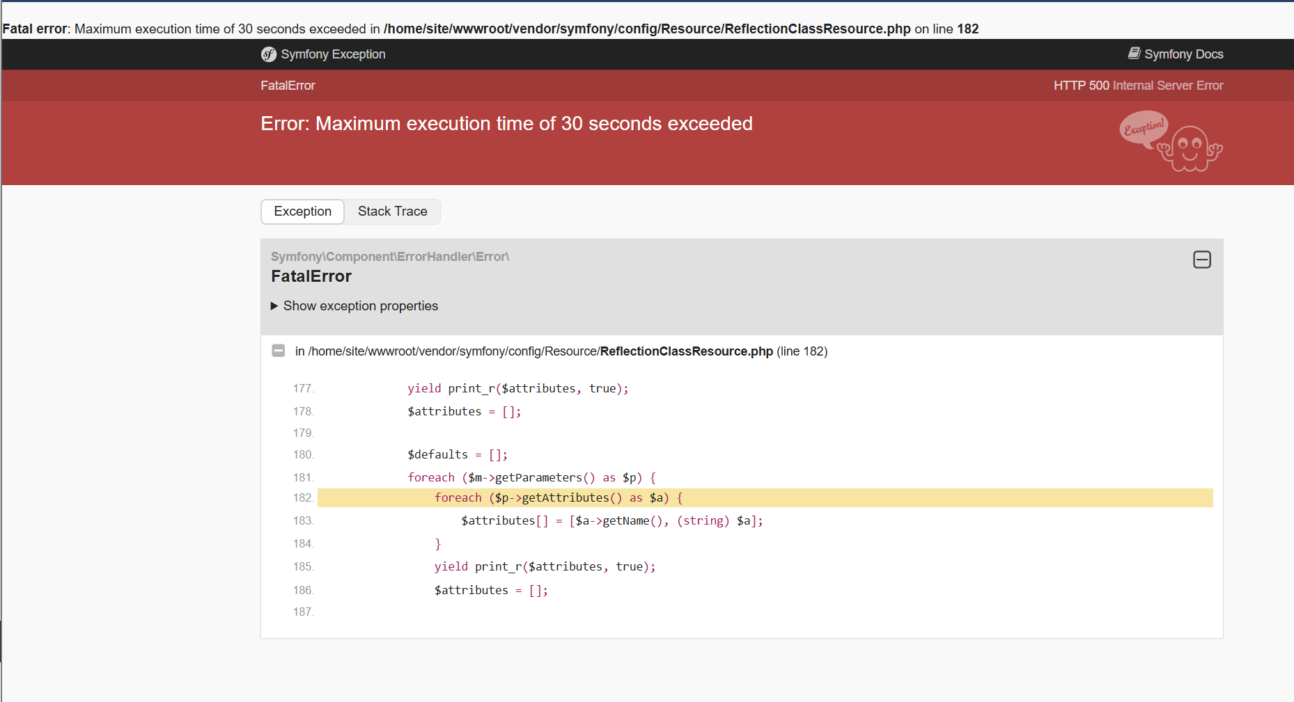 Every change and deployment crashes the application. We have to clear the cache make sure debug is on or off commit a few times and it looks like it suddenly working again.