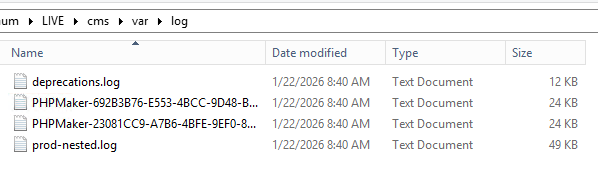 2026-01-22T13:56:15+00:00 [critical] Uncaught Exception: The stream or file "D:\REDACTED\cms\var\log/deprecations.log" could not be opened in append mode: Failed to open stream: Permission denied